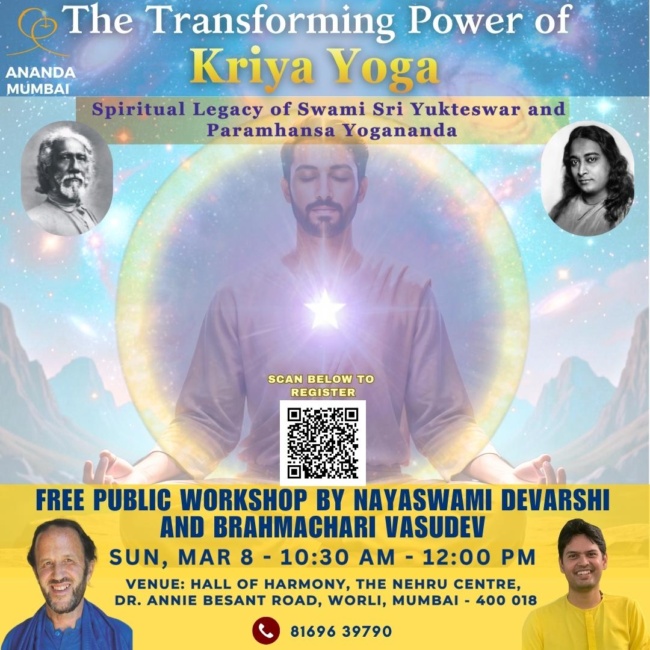 Public Talk: The Transforming Power of Kriya Yoga from 10:30AM to 12:00PM
